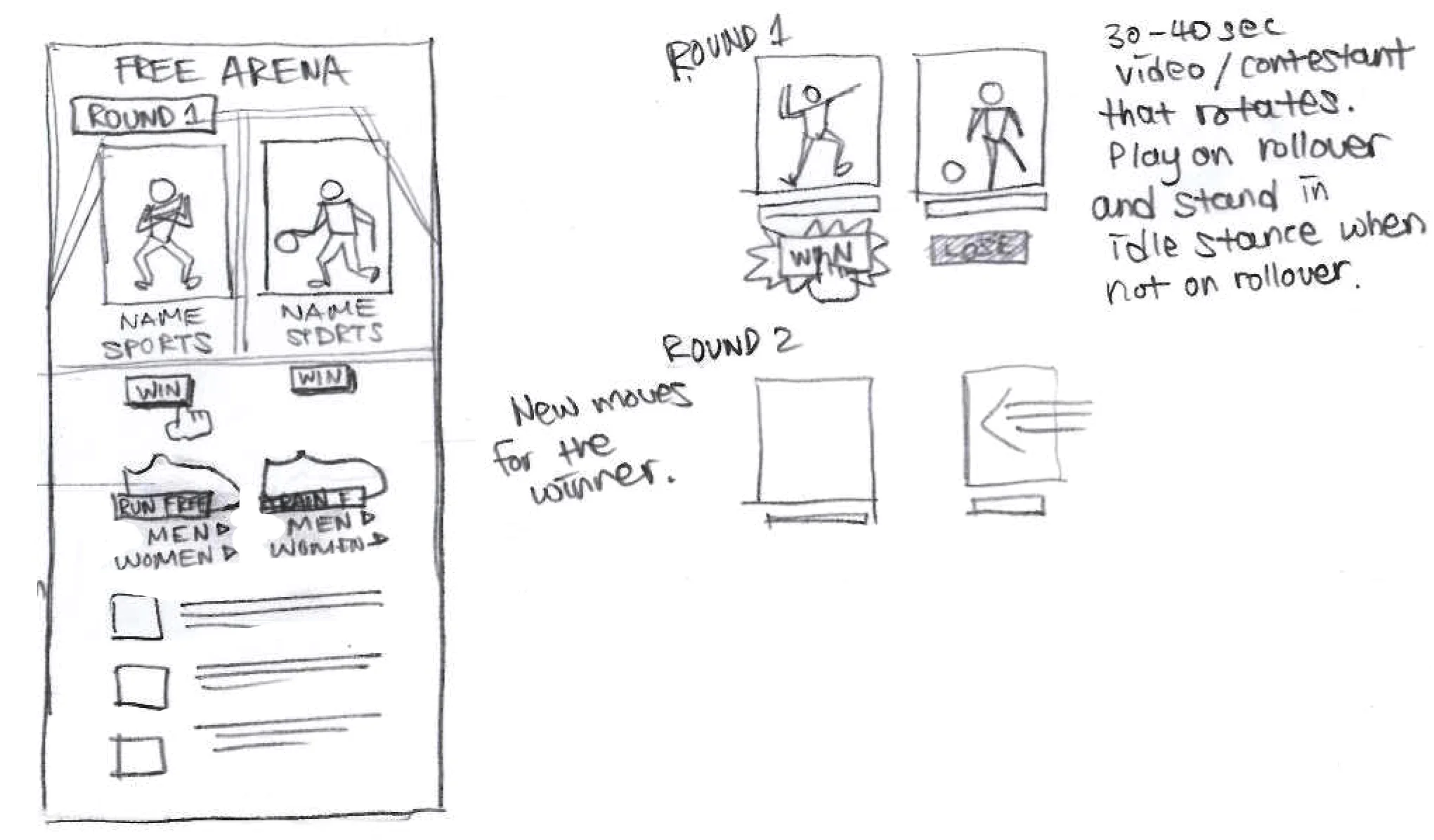 The team first came up with a microsite experience where we would showcase a video with 2 athletes matched up against each other to do a cool move in Nike Frees.